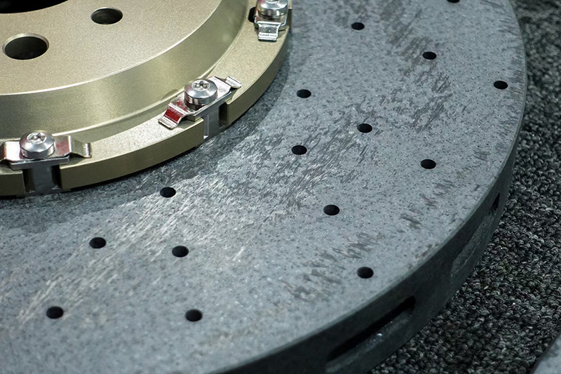 специално проектиран за твърдост, здравина и разсейване на топлината, което позволява на спирачния диск да функционира равномерно в екстремни ситуации, когато спирачките от стомана и чугун биха ги направили неизползваеми.