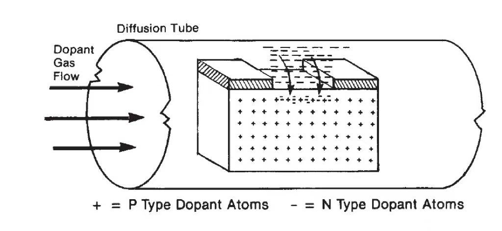 1. Високотемпературната дифузия е конвенционален метод за легиране на полупроводници. Идеята е полупроводникът да се третира при висока температура, което кара примесните атоми да дифундират от повърхността на полупроводника във вътрешността му. Тъй като примесните атоми обикновено са по-големи от полупроводниковите атоми, топлинното движение на атомите в кристалната решетка е необходимо, за да помогне на тези примеси да заемат интерстициални празнини. Чрез внимателно контролиране на температурните и времевите параметри по време на дифузионния процес е възможно ефективно да се контролира разпределението на примесите въз основа на тази характеристика. Този метод може да се използва за създаване на дълбоки легирани връзки, като например структурата с двойна ямка в CMOS технологията.