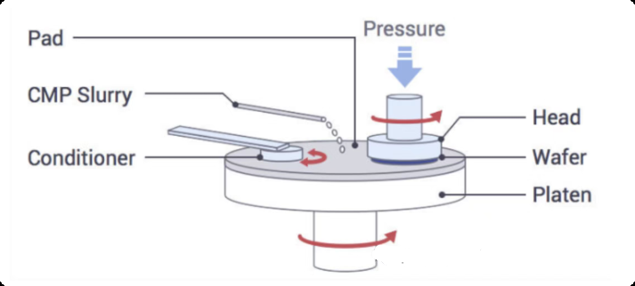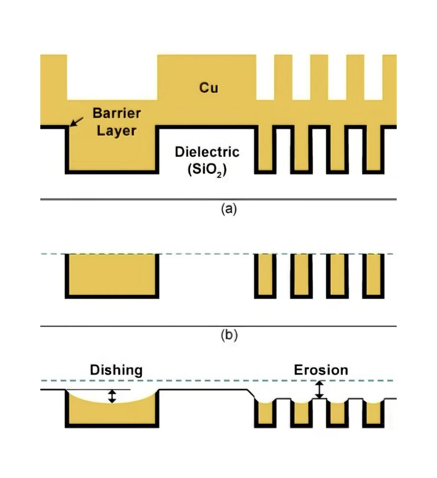 Химическото механично полиране (CMP), което съчетава химическа корозия и механично полиране за отстраняване на повърхностни несъвършенства, е важен полупроводников процес за постигане на цялостна планаризация навафлаповърхност. CMP води до два повърхностни дефекта, изкривяване и ерозия, които значително влияят на плоскостта и електрическите характеристики на структурите за свързване.