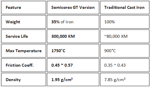 Намаляване на масата: GT версията тежи само 35% от стандартния чугунен диск.