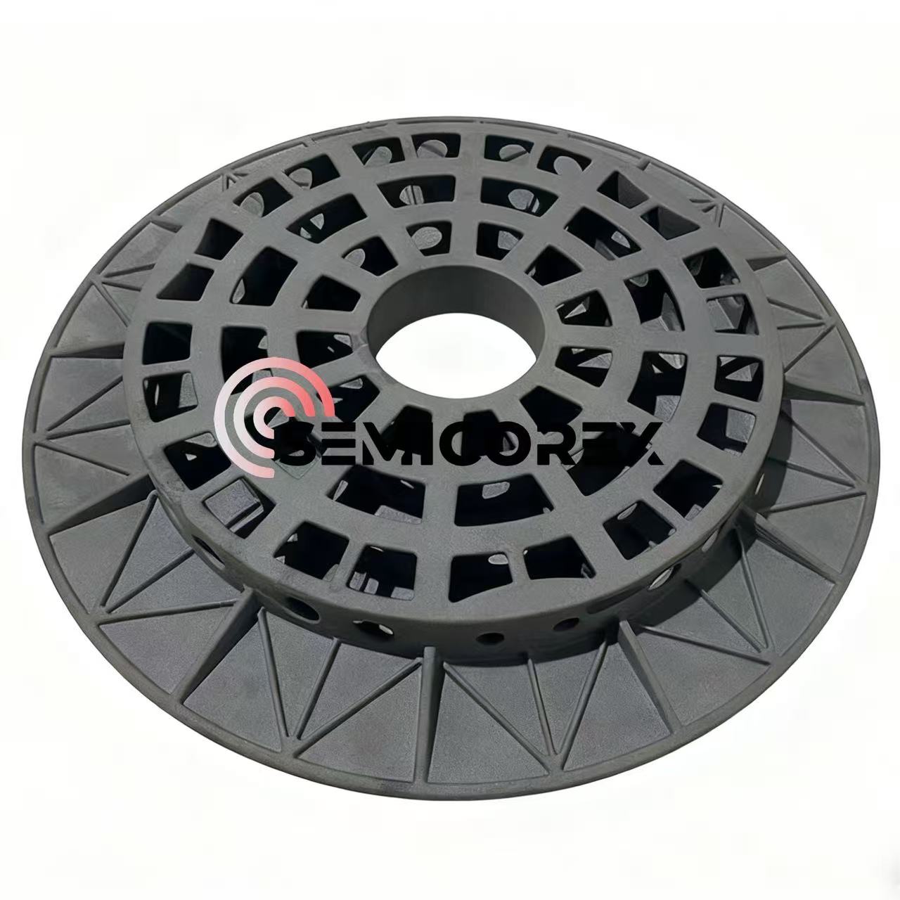 Semicorex може да произвежда огледала от силициев карбид с големи размери, леки и интегрирани сложни реактивни силициеви карбиди с неправилна форма чрез интегрираната технология за формоване на 3D печат (Максималният диаметър на неговите отразяващи огледала RB-SiC може да достигне 1500 mm). Semicorex може също така да предостави персонализирани услуги според индивидуалните изисквания на клиентите. За да осигурят качество на оптичното изображение и да отговорят на изискванията за висока разделителна способност на оптичните системи, отразяващите огледала RB-SiC постигат нанометрова точност на формата на повърхността чрез прецизна обработка и технология на покритие.